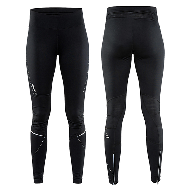 CRAFT Essential Tights jsou dlouhé dámské legíny, které jsou ideální, díky reflexním prvkům, kapsičce a zipům ve spodní části nohavic, především na běh. Pas je tvořen širokým pruhem s užší gumou v horní části a s možností stažení vnitřní šňůrkou. Bederní část a část podkolenních jamek má odvětrávacími panely - mešovinou. Reflexními prvky se objevují u zipů na nohavicích, na spodní části nohavic, ve švu pod kolenem a na bocích. Materiál je prvotřídní funkční a zajistí maximální komfort při sportu.