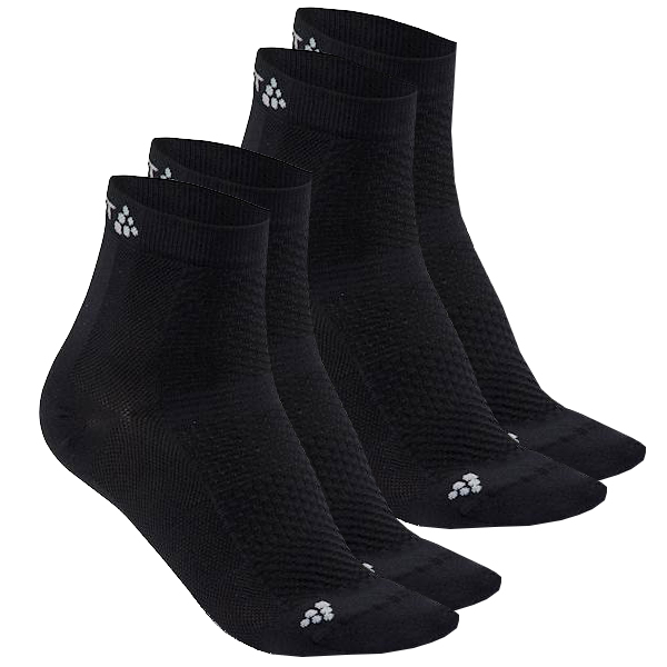 CRAFT COOL MID 2-pack plní všechny požadavky na sportovní ponožky. Sahají až nad kotník. Materiál je tenký, ponožky jsou anatomicky tvarované - rozlišení na levou a pravou. Téměř nezbytností jsou ploché švy v oblasti prstů. Ponožky jsou složeny z panelů o různé hustotě vlákna pro jednotlivé partie pro maximální komfort. Materiál umožňuje rychlý odvod potu. Obvod chodidel utváří panely ze stretche, který zabrání ponožce v hrnutí. Jsou ideálním sportovním doplňkem i při extrémních sportovních výkonech. Vhodné pro muže i ženy.