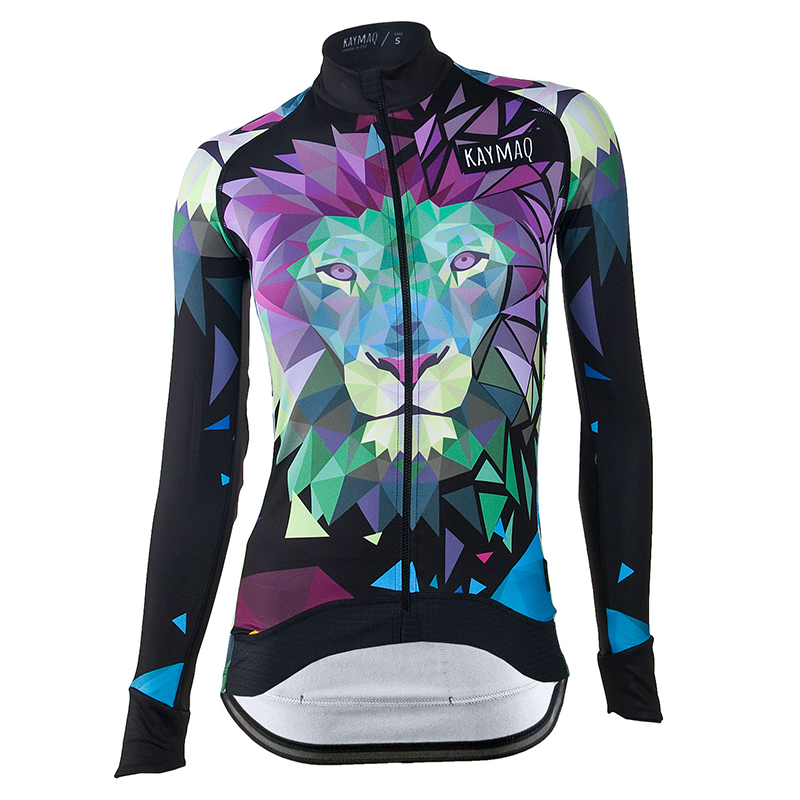 Cyklodres KAYMAQ LION s originálním designem LVA, ve kterém Vás nikdo nepřehlédne. Materiál je pružný, prodyšný a rychloschnoucí, lehce zateplený - ideální do chladnějšího počasí nebo také jako spodní vstva pod větrovku. Zapínání je na celozip, který má kryt proti oděru jak u krku tak na spodním okraji. Konce rukávu mají pružnou anatomicky tvarovanou manžetu, spodní okraj má silikonové nesmekové prvky. Trikot je vzadu delší a delší jsou už i boky. Stojáček dobře chrání krk. Vzadu nezbytné 3 kapsy do gumy a jedna voděodolná na zip. Nezbytností jsou ploché švy