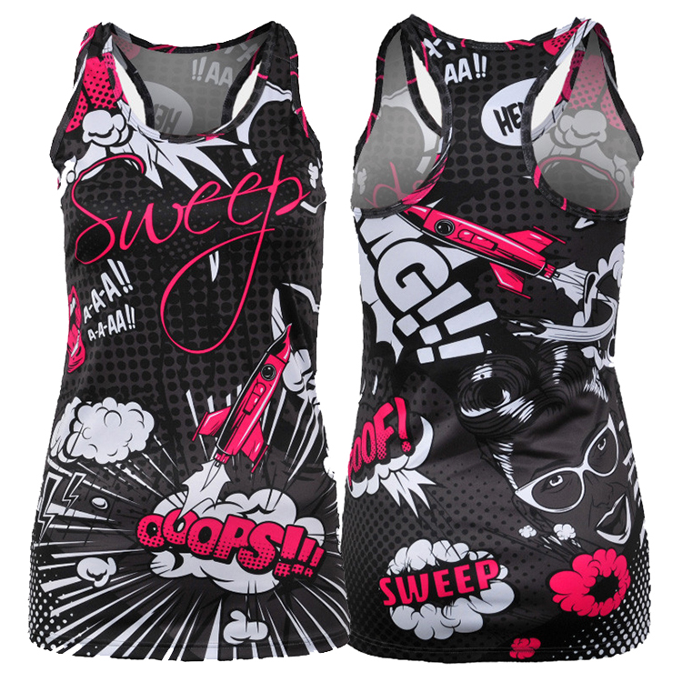 Komiksový motiv ovládá svět i ve sportovní módě. Funkční tílko SWEEP SWTS152 v jedinečném designu. Volit můžete v kombinaci bílé a černé nebo růžové, citronové a černé. Materiál je funkční plně přizpůsoben pro ty nejvyšší výkony. Záda jsou mezi lopatkami zúžená. Užší delší střih je spíše na tělo.