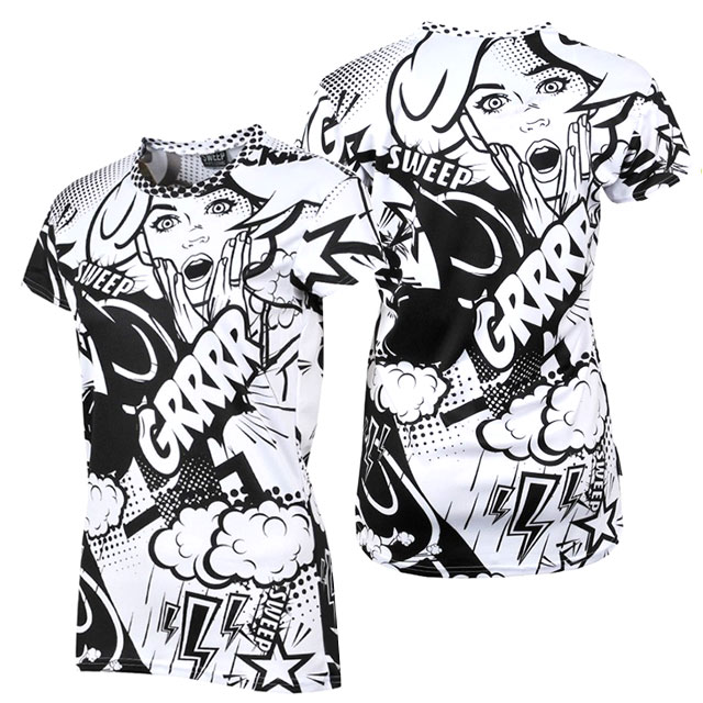 Komiksový motiv ovládá svět i ve sportovní módě. Funkční tričko SWEEP SWTS063 v jedinečným designu. Volit můžete v kombinaci bílé a černé nebo růžové, citronové a černé. Materiál je funkční plně přizpůsoben pro ty nejvyšší výkony. I přes volnější střih, velmi dobře padne a navíc skryje případné nedokonalosti.