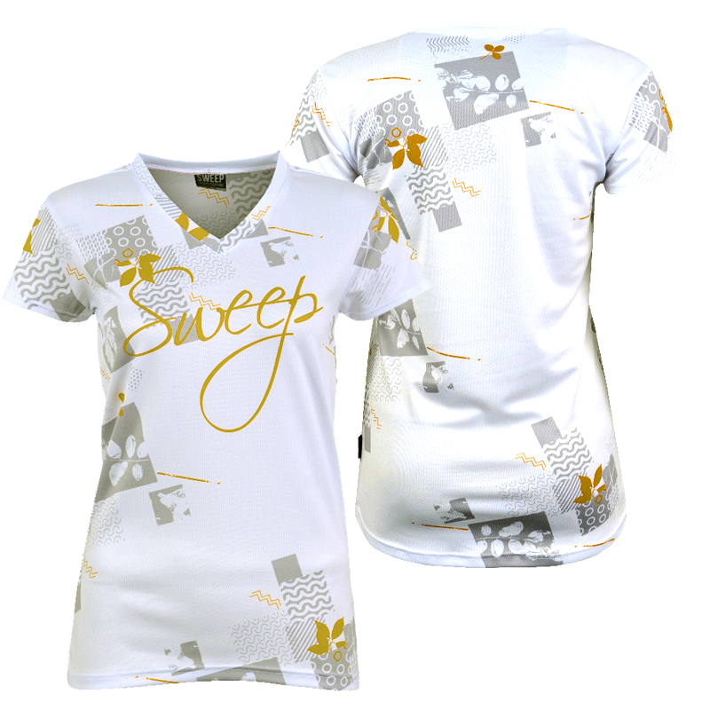 Zcela originální nový design trička SWEEP SWTS159 si zamilujete. Je jednoduchý se základem bílé, ale doplňuje ho zajímavý dekor. Vyniká svými funkčními vlastnostmi - odvádí perfektně pot, je rychloschnoucí a tím drží tělo v suchu a teple bez přehřátí. Látka je lehounká a velmi příjemná na těle. Dámská trička SWEEP poskytují vysoký komfort při jakýchkoli pohybových aktivitách. Střih je pohodlný. Materiál je funkční plně přizpůsoben pro ty nejvyšší výkony. I přes volnější střih, velmi dobře padne a navíc skryje případné nedokonalosti.